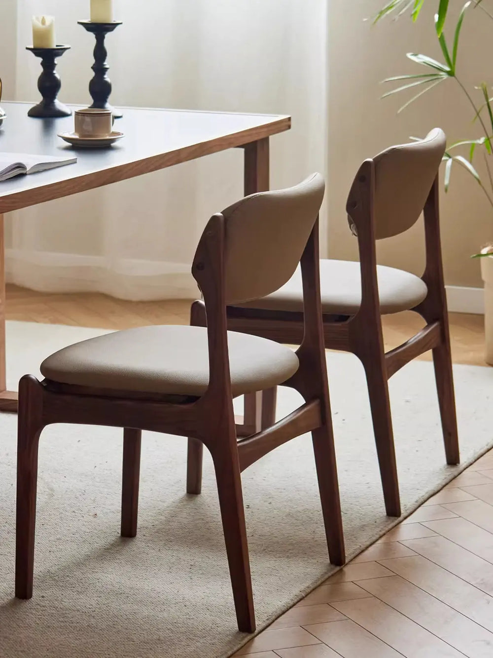 ブラックウォールナット無垢材ダイニングチェア(背もたれクッション付き・家庭用ダイニングチェア)