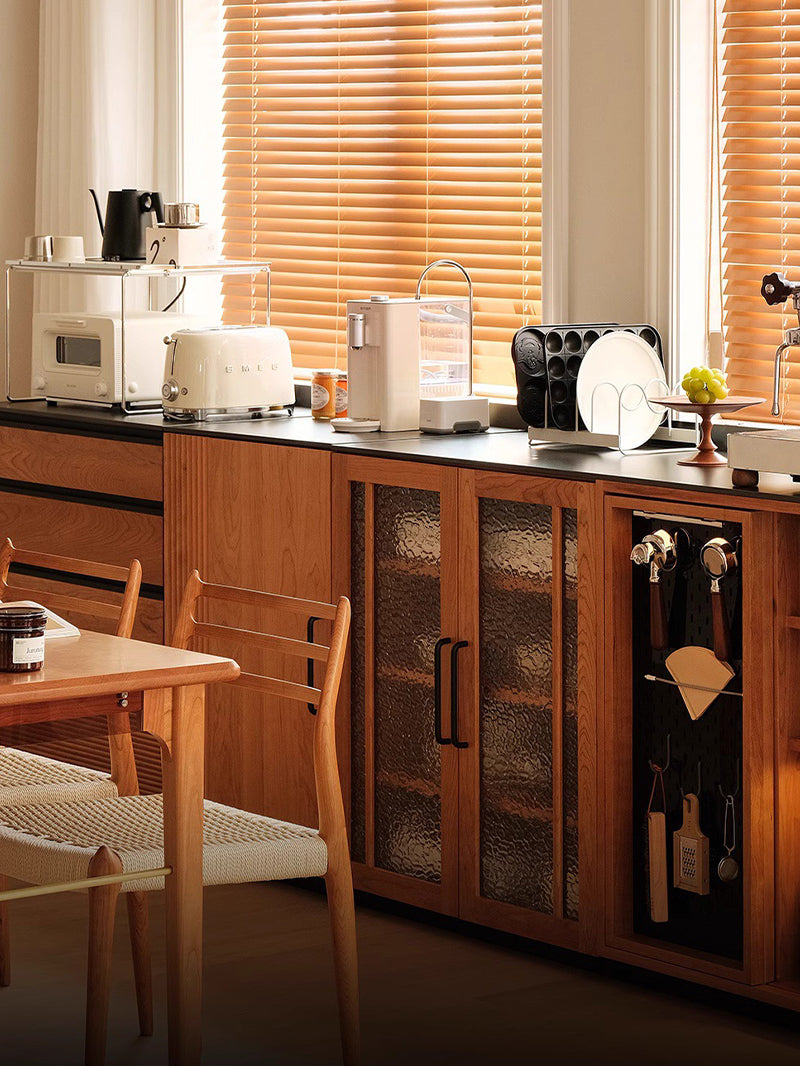 模組餐邊櫃 實木收納置物櫃 櫻桃木家具日式餐廳茶水櫃